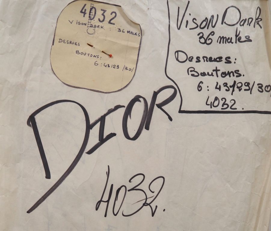 Christian DIOR Ensemble comprenant huit patrons de couture : - VISON DARK 4032 (10 morceaux) - VISON NOIR 4041 (19 morceaux) - VISON RANCH/RANCH MINK 5075 (14 morceaux) - VISON VERT BRONZE / GREEN MINK 5070 (10 morceaux) - VISON PASTEL et VISON BLANC 5005 (16 morceaux) - SWAKARA ROUILLE 5021 (12 morceaux) - RENARD GRIS PERLE 6041 (11 morceaux) - RAGONDIN IVOIRE 5069 (9 morceaux) On y joint huit patrons de couture en craft dans des pochettes en papier marquées DIOR 4008 (13 morceaux), DIOR 6012 (28 morceaux), DIOR 4087 (19 morceaux), DIOR 6046 ( 13 morceaux), DIOR 6019 (9 morceaux), DIOR 5084 (6 morceaux), DIOR 6053 (16 morceaux) et DIOR 5009 (11 morceaux). (états variables, sans garantie que les patrons soient tous complets)