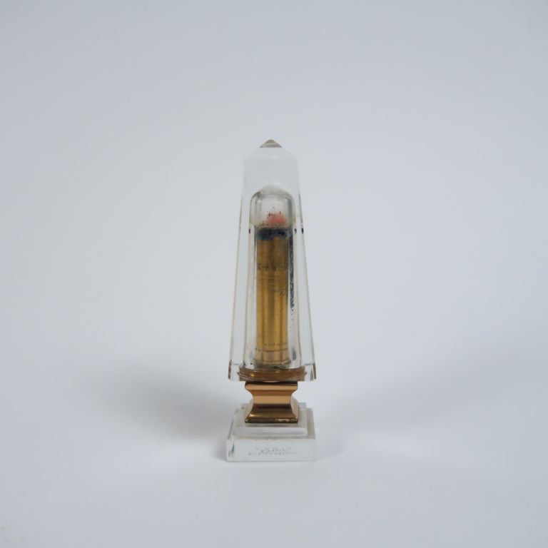 Lot de Christian DIOR. Etui à rouge à lèvres en verre en forme d'obélisque. au prix de 40 à 60 € en vente aux enchères par l'hôtel des ventes Primardeco