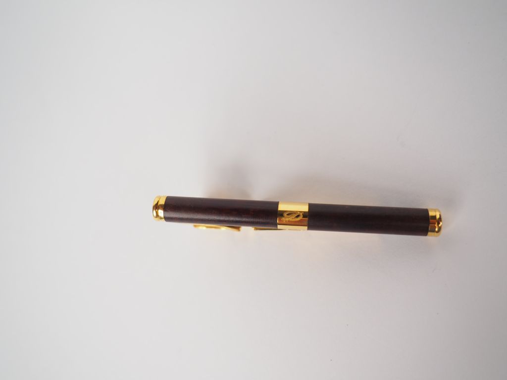 DUPONT, Paris Pince à cravate en composition et métal doré. Signée. Dans son écrin. Longueur : 5,5 cm