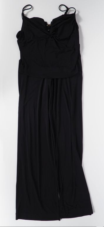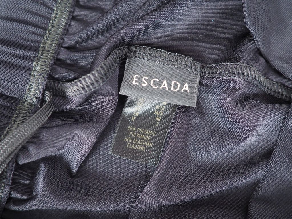 ESCADA Ensemble pantalon et caraco noir en polyamide et élasthane. Le pantalon fluide. Caraco à bretelles réglables et soutien gorge intégré. Taille du pantalon. 38 Taille du caraco. 40