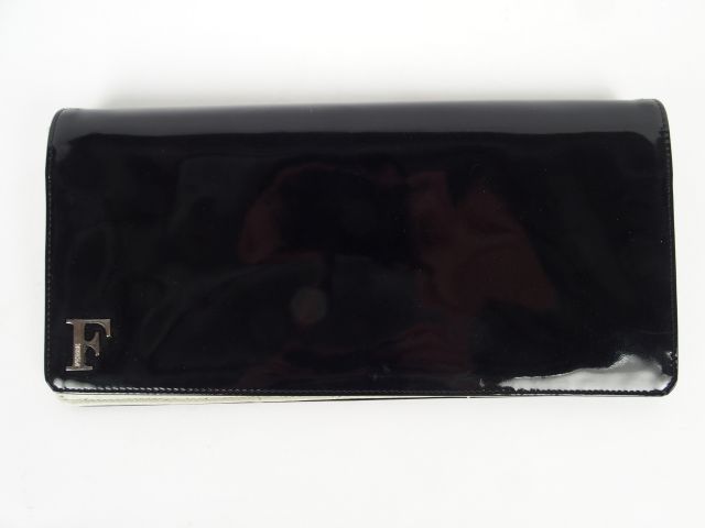 Lot de FERRE. Pochette du soir en cuir vernis noir, interieur cuir beige au prix de 50 à 100 € en vente aux enchères par l'hôtel des ventes Primardeco