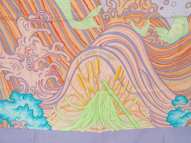 Lot de HERMES. Foulard 'à contre courant' en soie au prix de 100 à 150 € en vente aux enchères par l'hôtel des ventes Primardeco