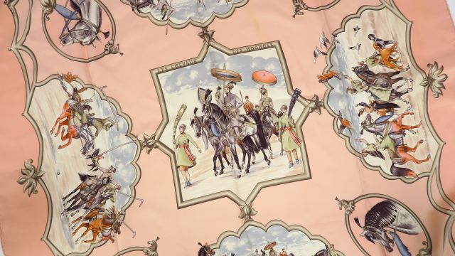 HERMES. Foulard 'Les chevaux des Moghols' (quelques taches)