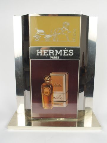Lot de HERMES. Important présentoir publicitaire pour Calèche d’Hermès (année au prix de 200 à 300 € en vente aux enchères par l'hôtel des ventes Primardeco