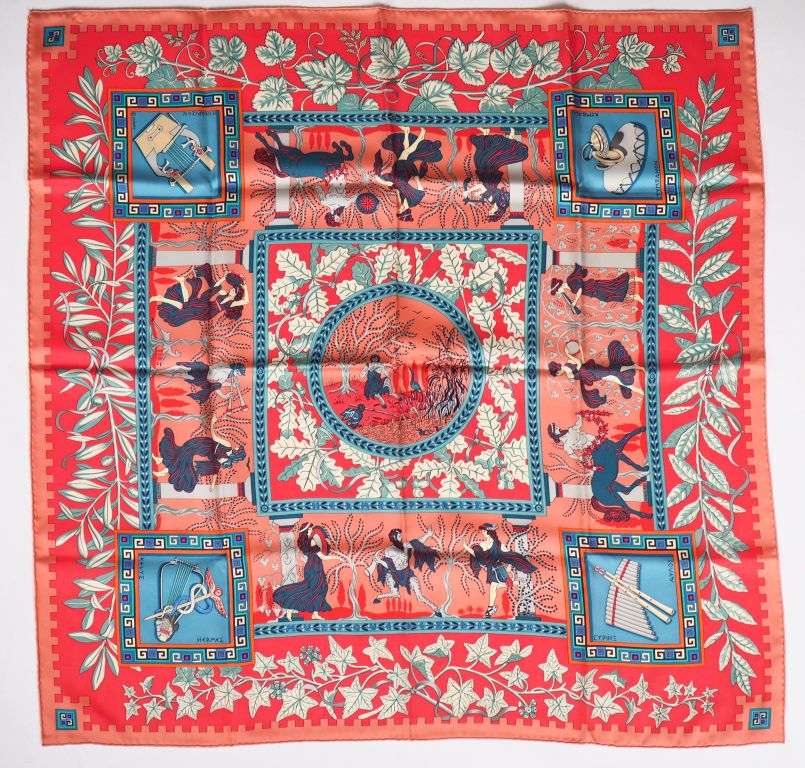 HERMES, Paris Carré en soie polychrome, modèle "Musique des dieux". Signé. Dans sa boite.