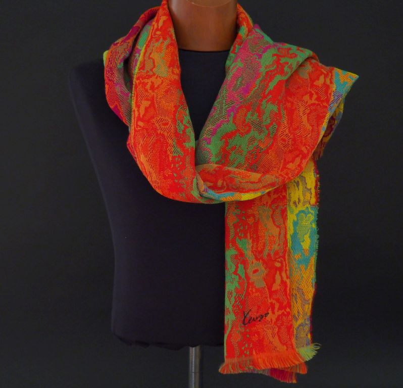 KENZO, Etole probablement en laine, à décor bariolé. Signée. 69 x 172,5 cm (un fil tiré)