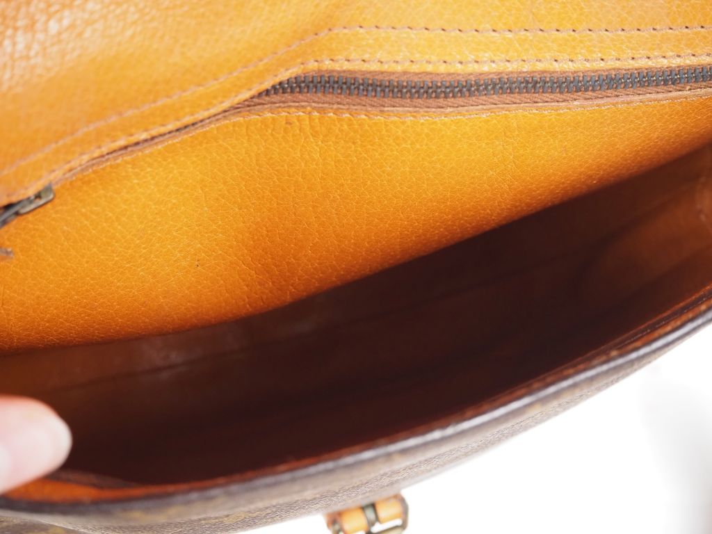 LOUIS VUITTON Sac CHANTILLY (c 1975). Toile monogramée et vache naturelle. Intérieur en peau de porc. Dim. 27 x 24 x 7 cm (pas d'usure majeure, cuir patiné) Expert : Geneviève Fontan