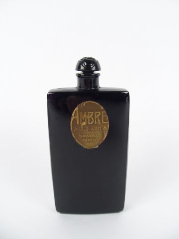 MOLINARD (années 20) Ambre Flacon en verre fin opaque noir Étiquette d...
