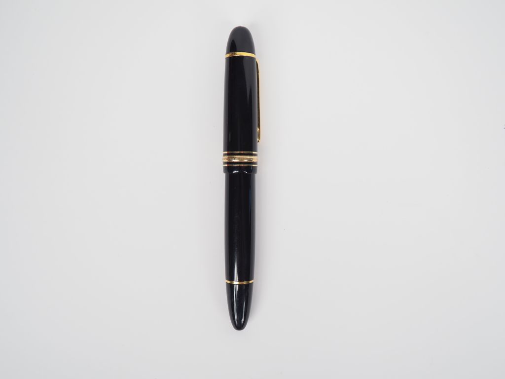 MONTBLANC Stylo plume, modèle "Meisterstuck n°149" en résine noir et métal doré. Plume en or 750. Signé.