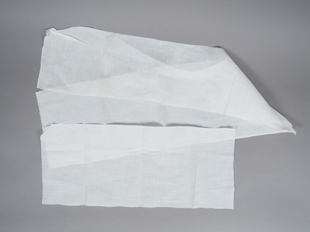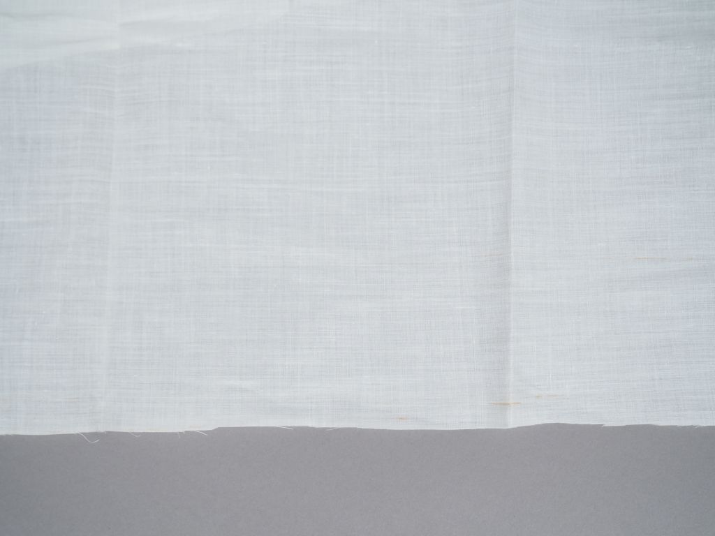 Précieux échantillon de batiste, fil de main XIXème siècle, 24 cm/58cm et 24cm /57cm. Cette pièce de tissu a été tissée et filée à la main, ce type d'étoffe dont la fabrication a pris fin au début du XXè siècle provenait le plus souvent du cambrésis en Normandie. Expert : Véronique Dumont Castagné