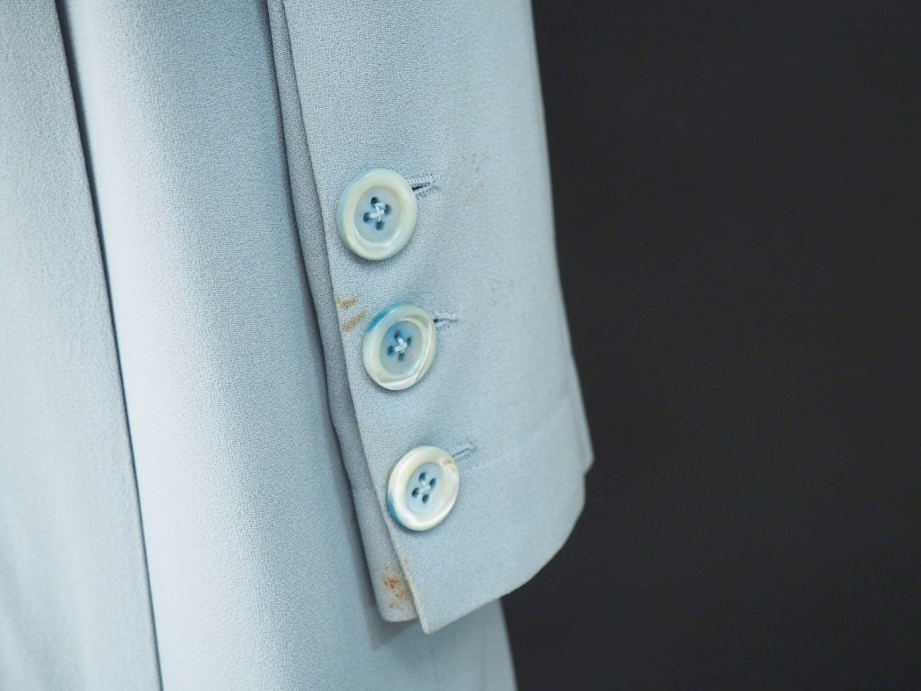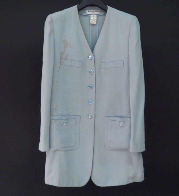 Sonia RYKIEL Veste bleu ciel en acétate (65%) et viscose (35%). Quatre poches plaquées à l'avant. Ouverture par cinq boutons. Taille. 44 (tâches)