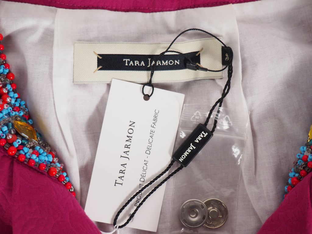 TARA JARMON Veste en coton (100%) fuchsia, à décor de fleurs. Le col agrémenté de perles de couleur. Femeture par trois boutons. Manches courtes. Taille. 38