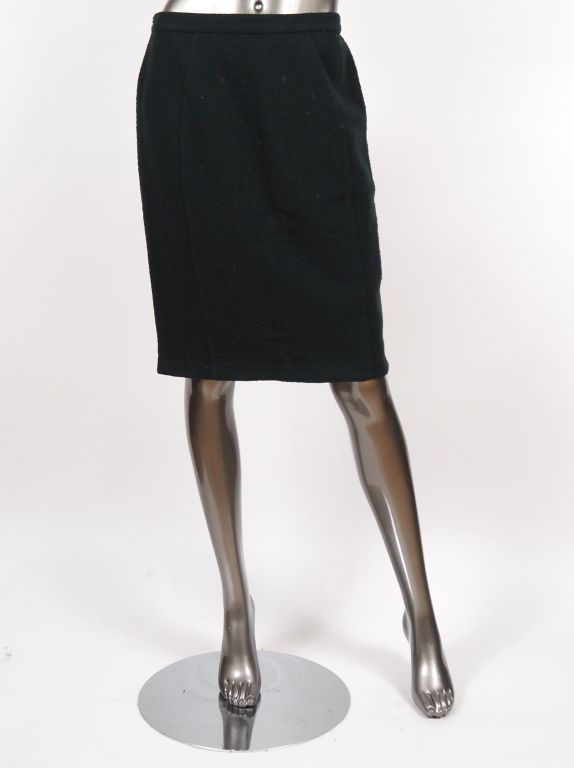 Thierry MUGLER, Paris Jupe taille haute à pinces en laine (99%) verte. Fermeture à l'arrière par zip et crochet. Taille. 44 (tachée)