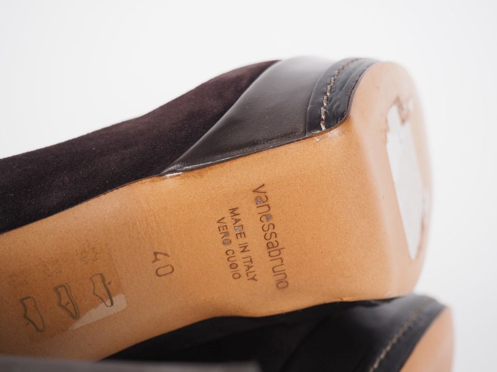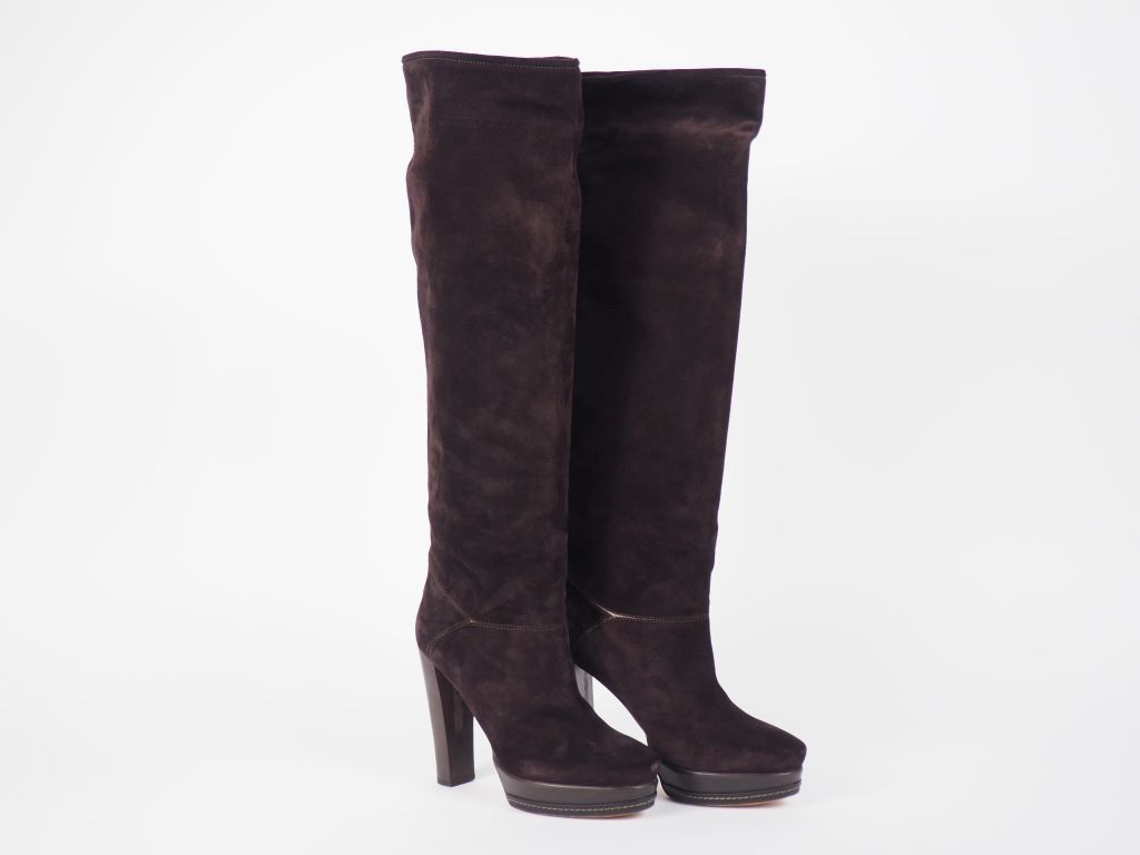 Vanessa BRUNO Paire de cuissardes à talon et plateforme en cuir marron foncé. Taille. 40 Dans leur boite.